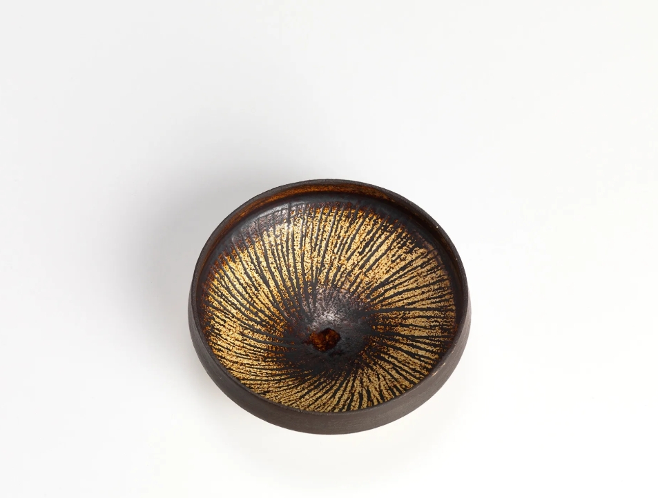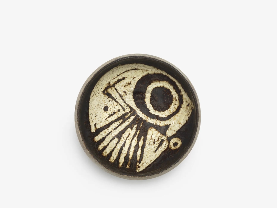 Other highlights include a black spade from circa 1970, a bowl with semi-abstract design from circa 1955, and a set of four conical cups and saucers made in collaboration with Lucie Rie in the mid-1950s. The exhibition will be on view until 18 April.